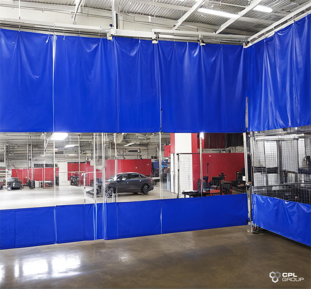 Automotive paint curtains and PVC systems help define controlled process zones, supporting quality management and operational consistency.